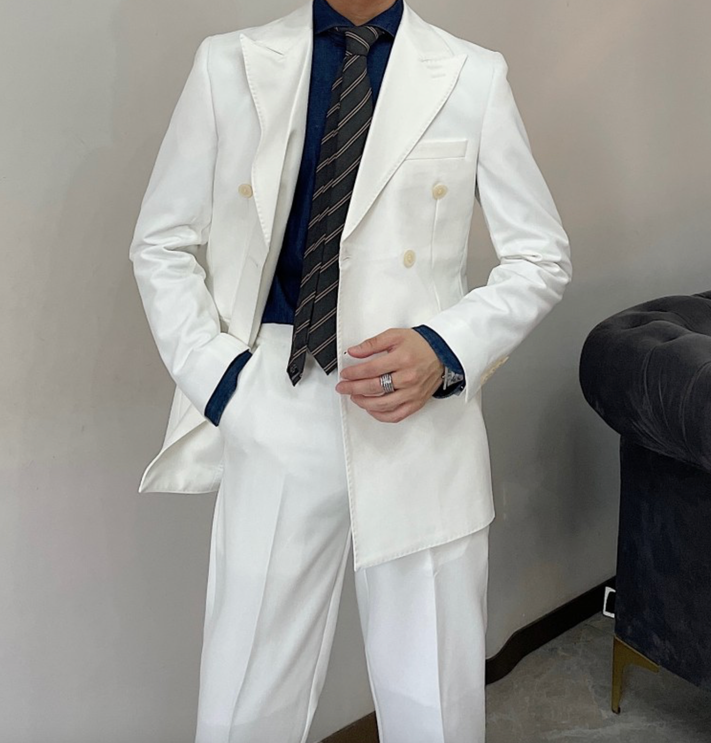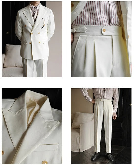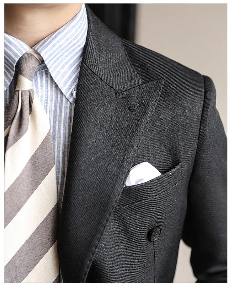 Hochwertiger zweiteiliger Slim Fit Zweireiher Anzug Einfarbig Steigendes Revers Doppelschlitze für Herren | S01