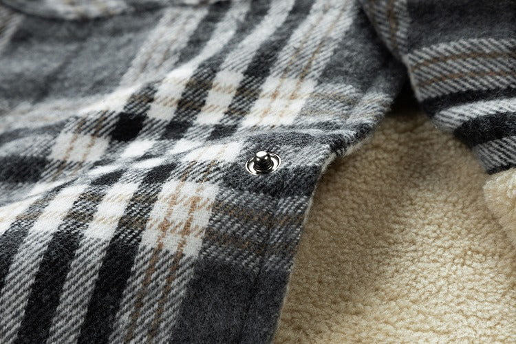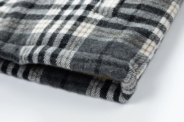 Hochwertige Winterjacke für Herren, karierte Wolle, schweres Übergrößenhemd, karierter Kapuzenmantel, Oversize-Oberteil | 88027