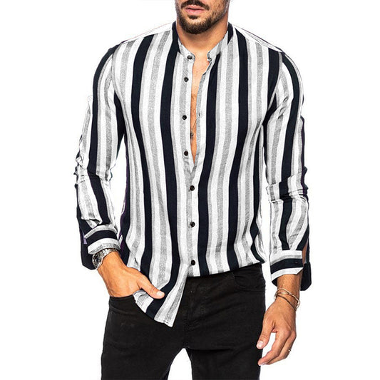 Chemises décontractées à manches longues en denim à rayures pour hommes | 6015